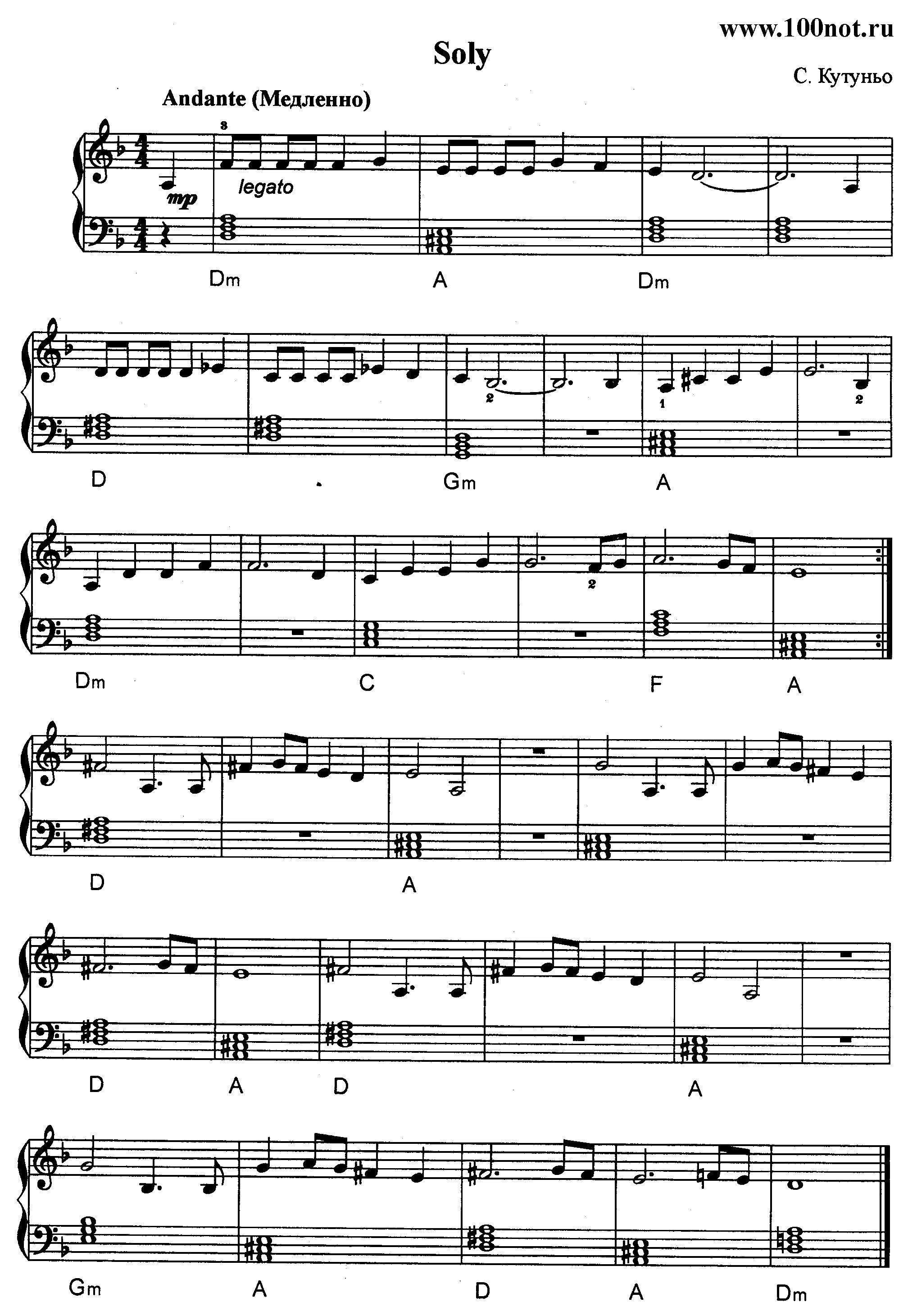 Начало нотного архива : Ноты для фортепиано :