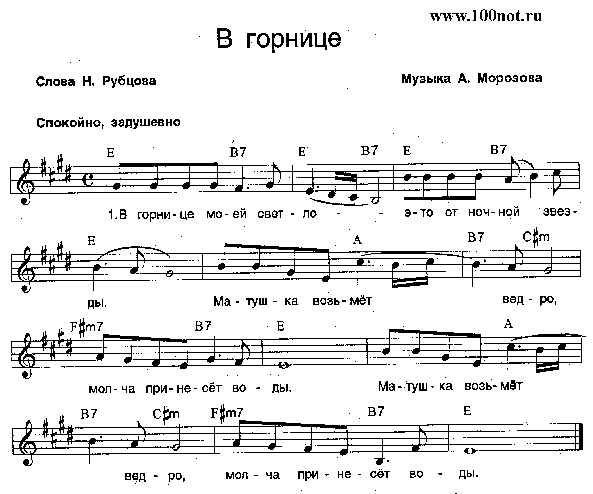 В горнице моей светло — Это от ночной звезды. Матушка возьмет ведро, Молча принесет воды.