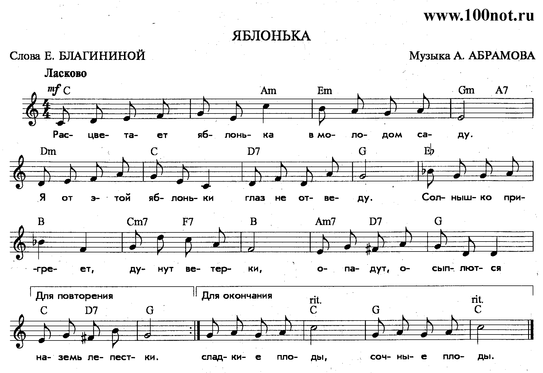 Расцветает яблонька В молодом саду. Я от этой яблоньки Глаз не отведу.