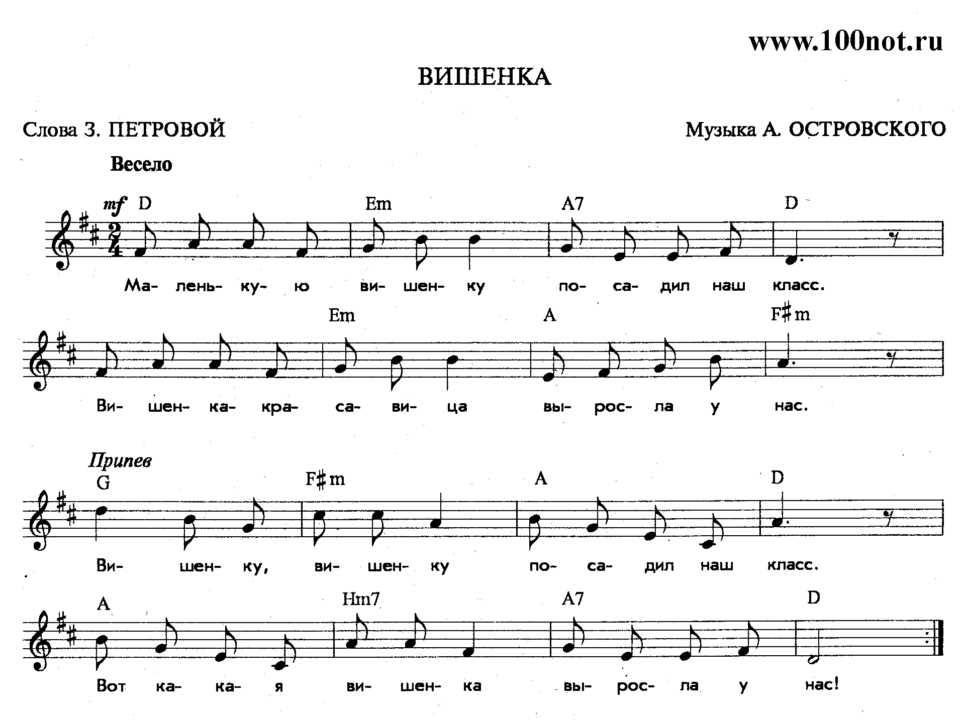 Припев: Вишенку, вишенку Посадил наш класс. Вот какая вишенка Выросла у нас!