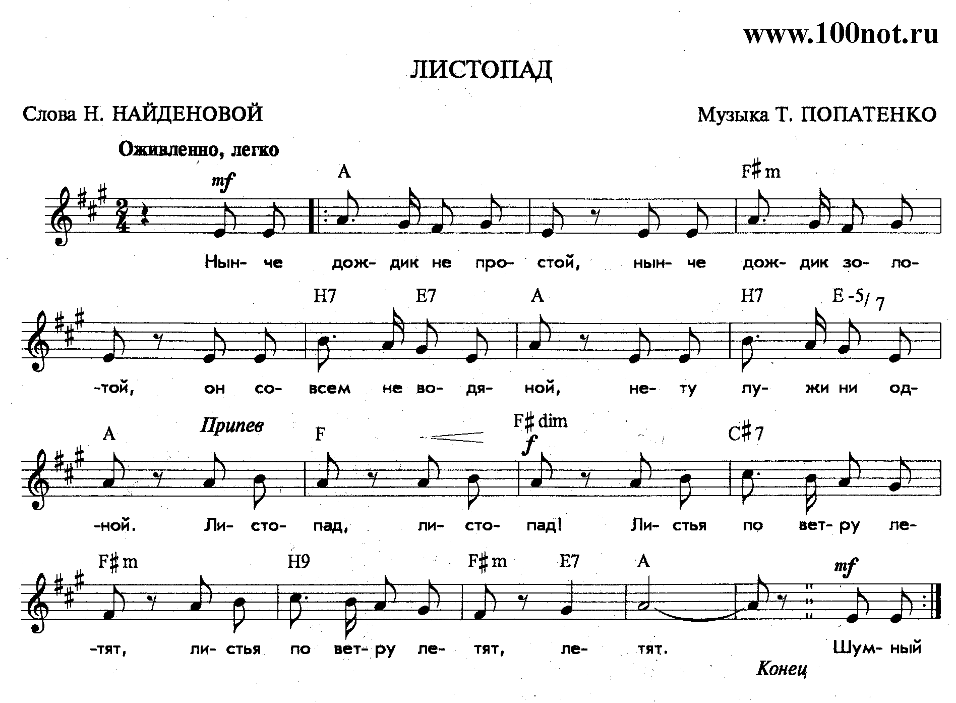 Припев: Листопад, листопад! Листья по ветру летят. Листья по ветру летят, летят.